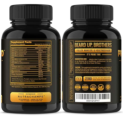 1. Prime Beard Growth Vitamins Supplement for Men by NutraChamps